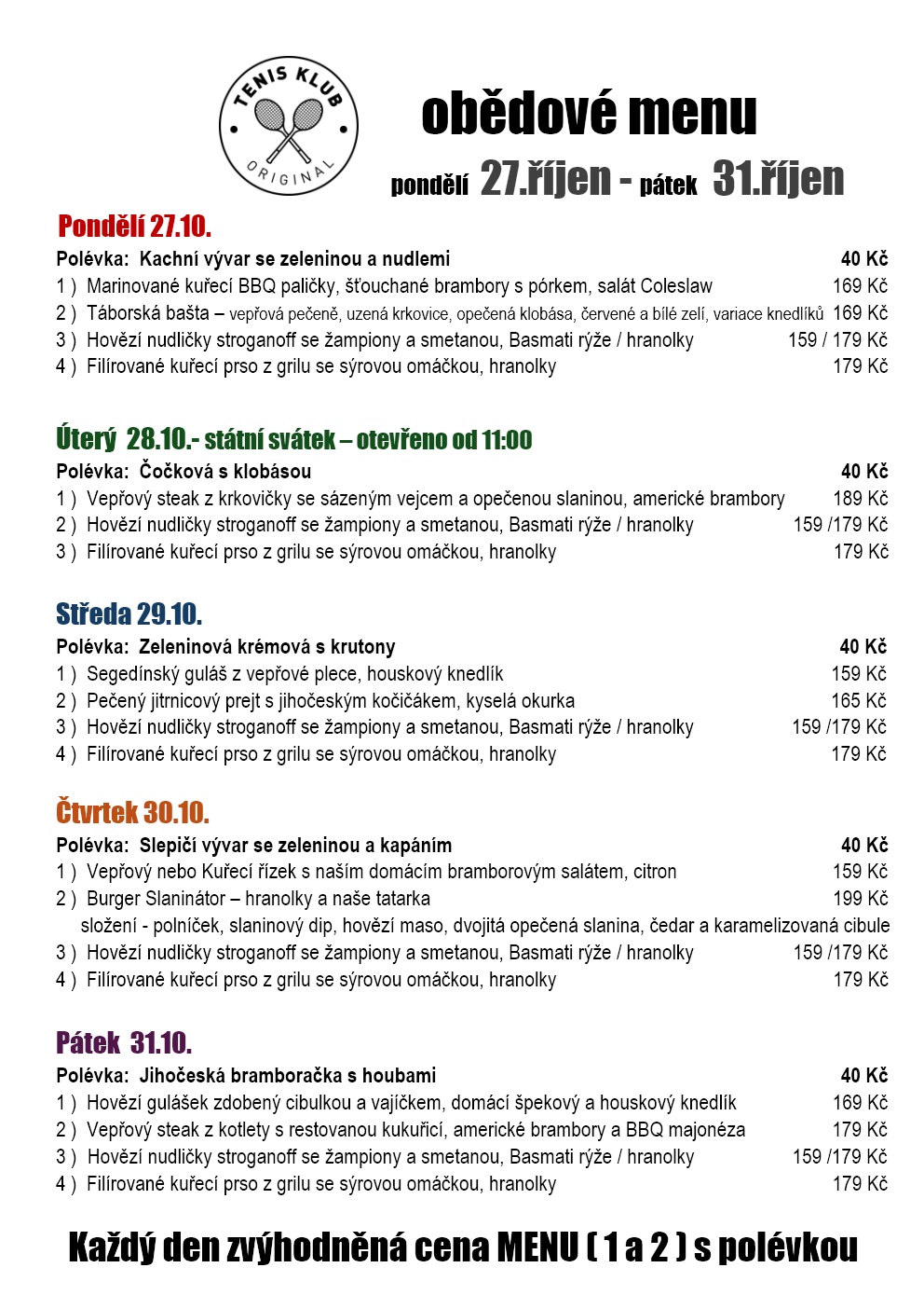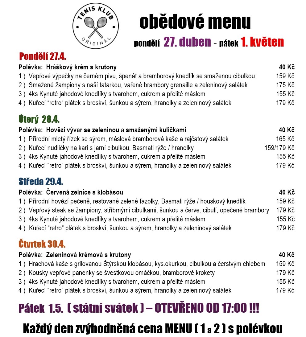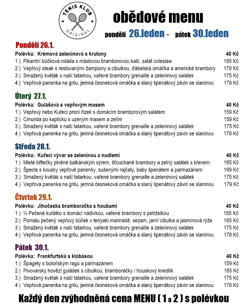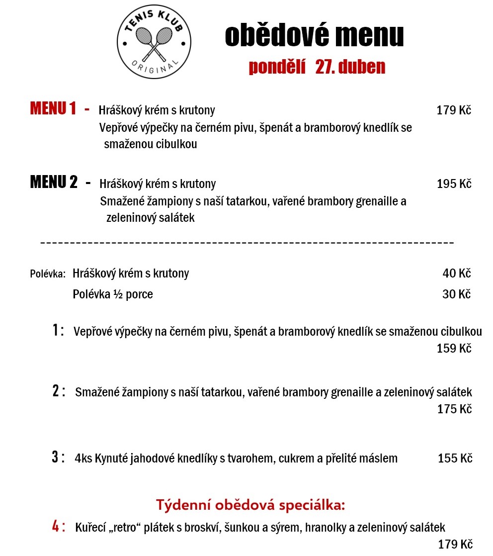 V Restaurace Tenis Klub Original vás čeká vřelé přivítání. Těšíme se, že budeme vašimi hostiteli v Českých Budějovicích! Přijďte si pochutnat v našem steakhouse. Nemůžeme se dočkat, až vás uvidíme! Nabídneme vám lahodné pokrmy české kuchyně. Vychutnejte si skvělé gurmánské pokrmy, domácí kuchyni, regionální produkty a tradiční kuchyni, které vám servíruje náš přátelský personál. Naše lahodné pokrmy čekají na to, až je ochutnáte. Zde si můžete dopřát naši lahodnou zmrzlinu. K dispozici jsou také osvěžující nápoje. Náš ochotný personál vás potěší chutným obědem i večeří. Kromě servírování jídla nabízíme také příjemnou pivní zahrádku.